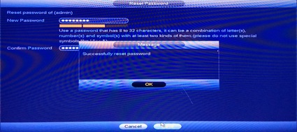 11. DVR/NVR akan meminta untuk menulis password yang baru pada kolom  New Password dan Confirm Password, klik Save.