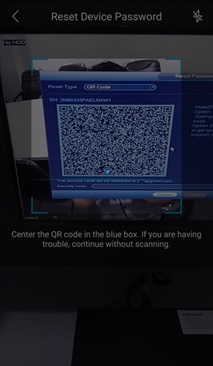 8. Setelah masuk ke menu reset device password, scan Barcode yang ada di layar monitor.