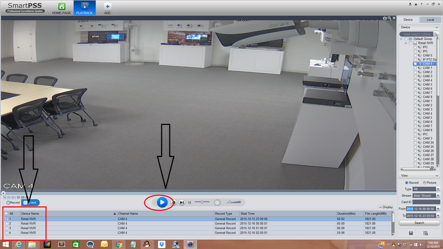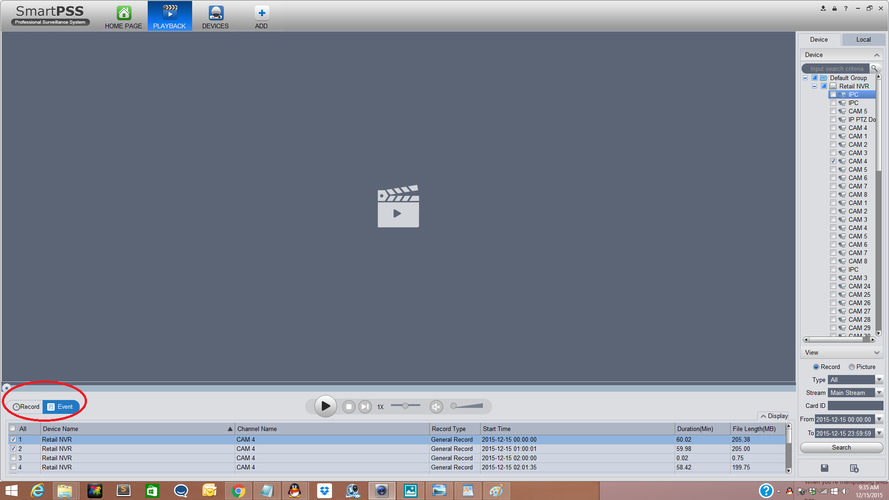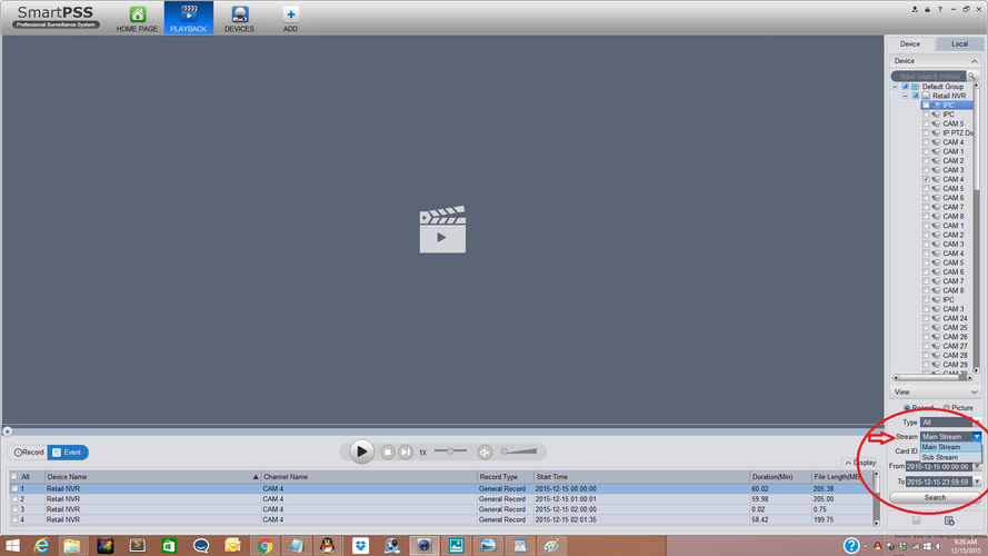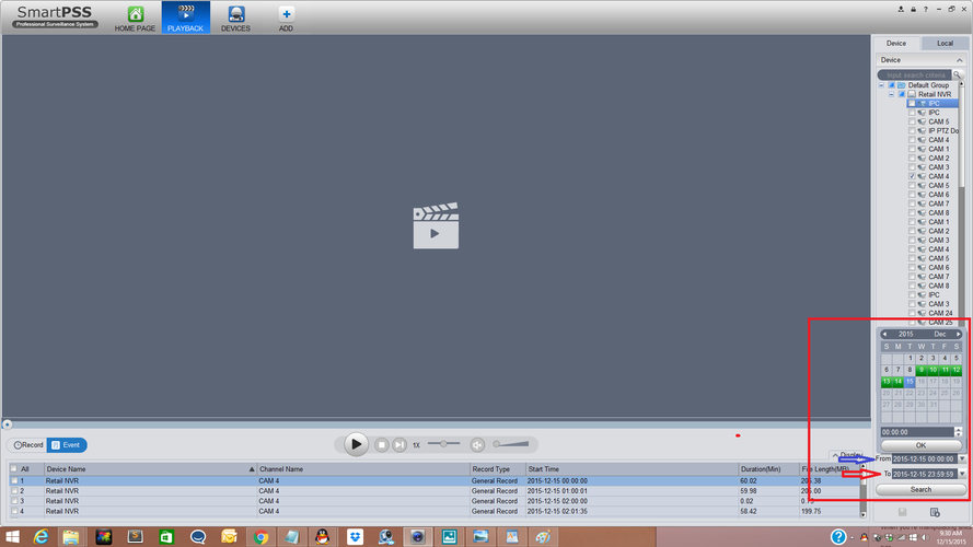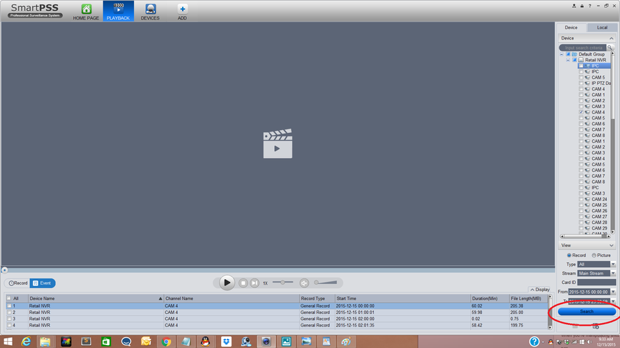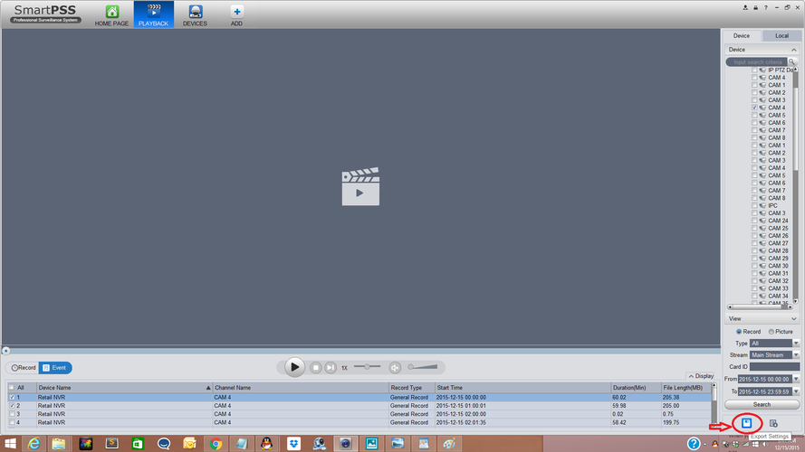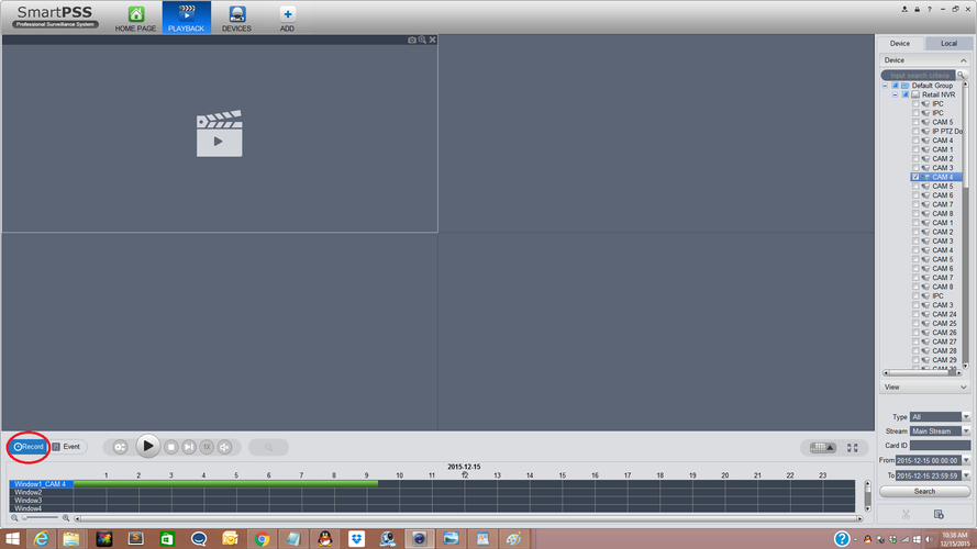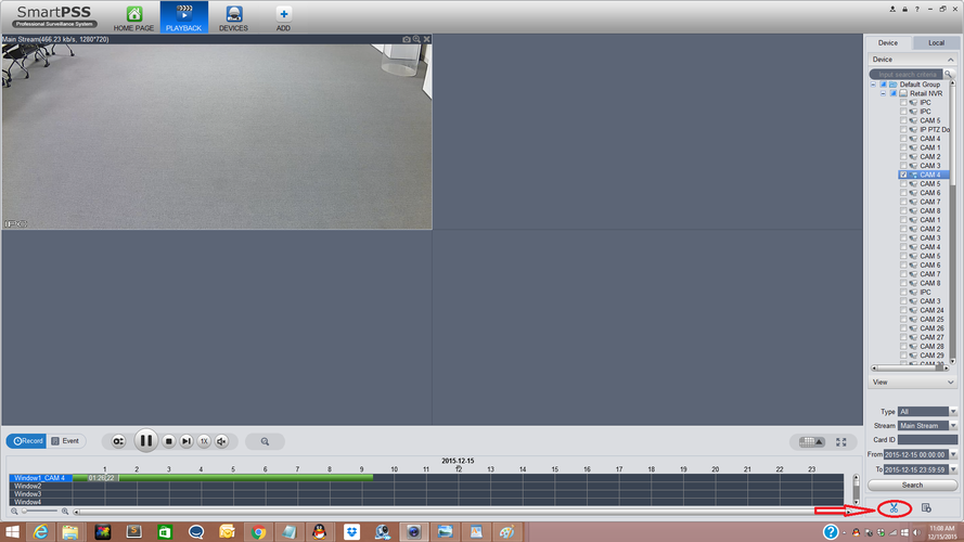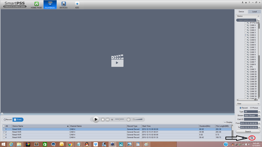 1. From the Home Page on SmartPSS select the “PlayBack Button”