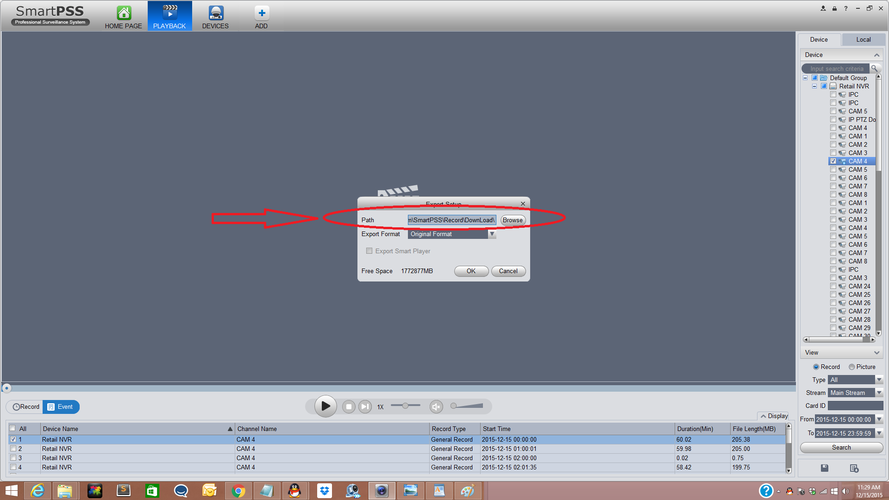 2. From the PlayBack Page on the right hand side select“Camera or Channel” for the footage you need to backup. Multiple cameras or channels may be selected.