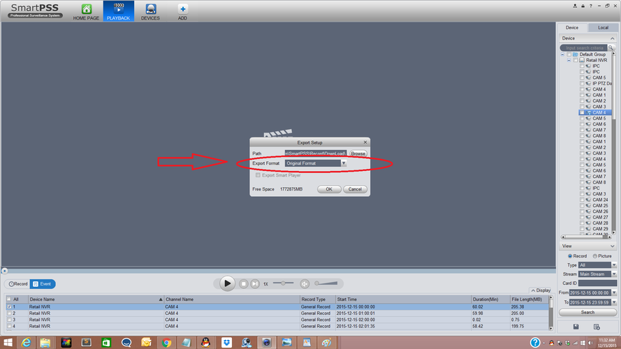 13. Select "Export Format" (Original Format, ASF, AVI, MP4) and click "OK"