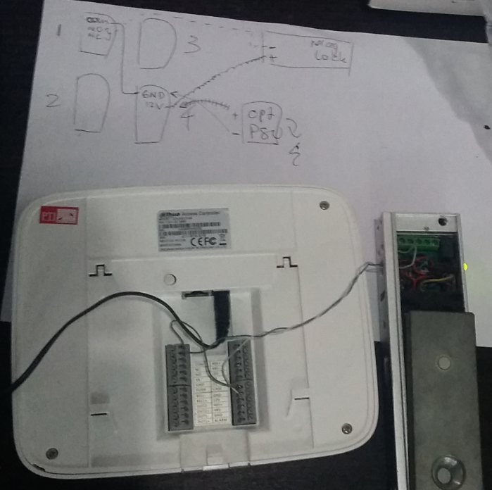 This scheme is used when the adaptor for Dahua access control is not available, but we do have an external power supply that able to produce output power 12V 1A.
