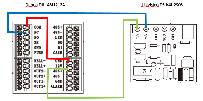 A. Wiring the door locl using power from Dahua DHI ASI1212A