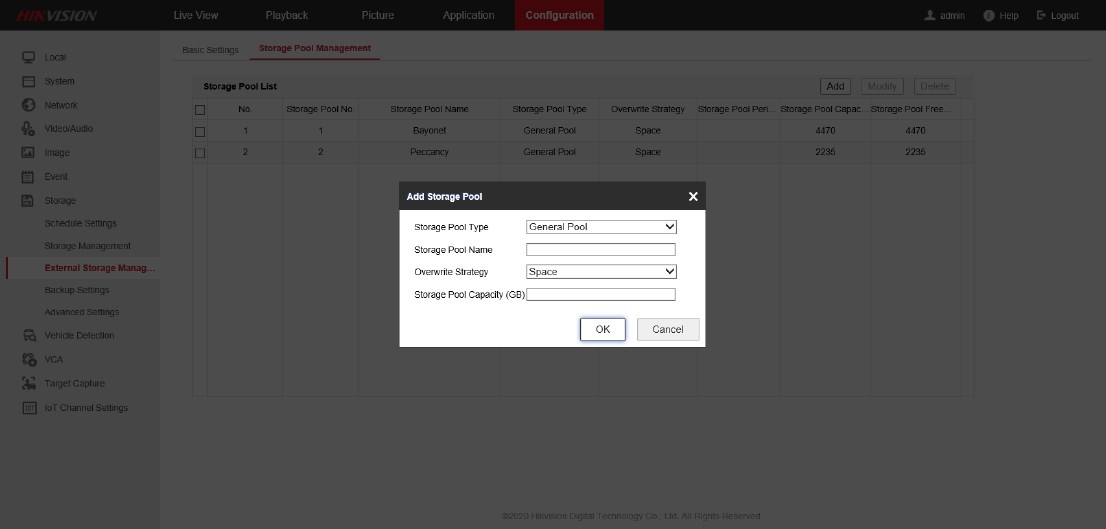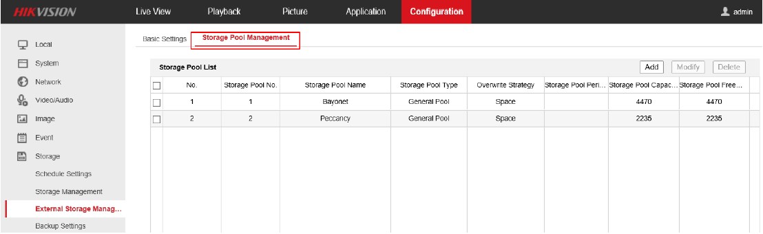 c. Simpan konfigurasi dan reboot NVR, Anda akan melihat opsi Storage Pool Management di daftar opsi Storage.
