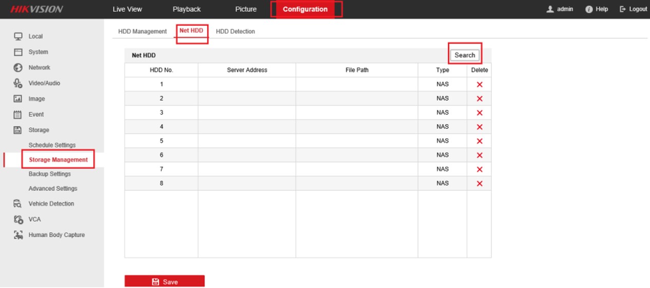 - Masuk ke Configuration Interface dan Storage Management - Net HDD