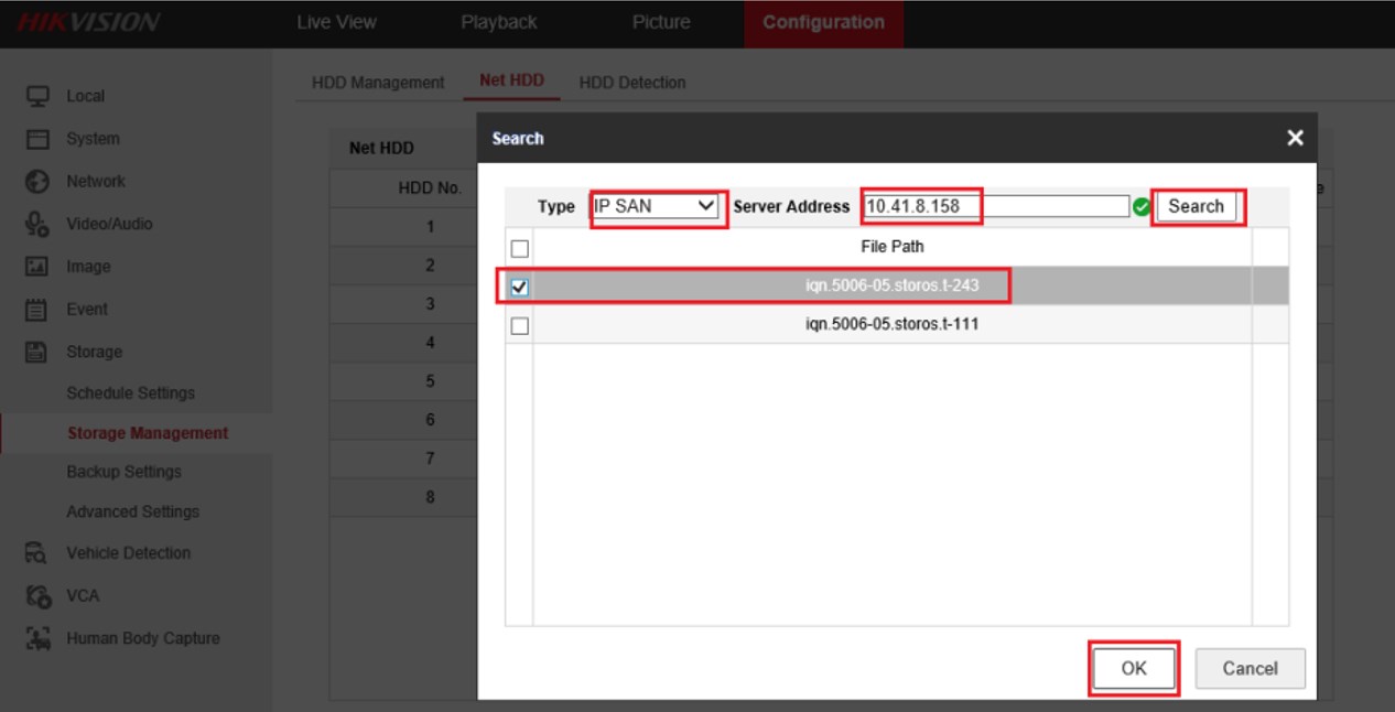 - Klik tombol 'Search', dan pilih 'IP SAN'. Kemudian masukkan alamat IP, klik 'Search' dan pilih 'File Path'. Klik tombol 'OK', dan selesai untuk menambahkan