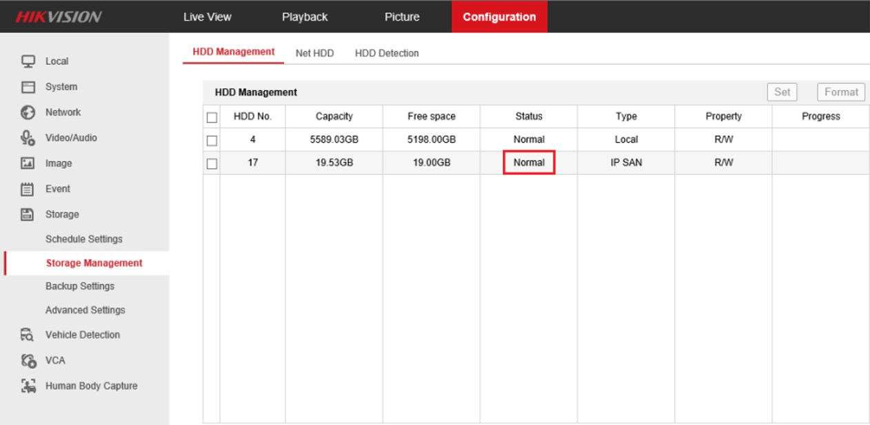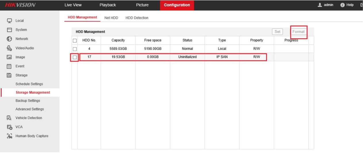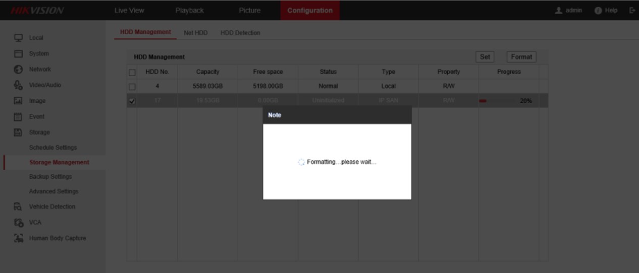 - Klik IPSAN, lalu klik 'Format' untuk menginisialisasi HDD.