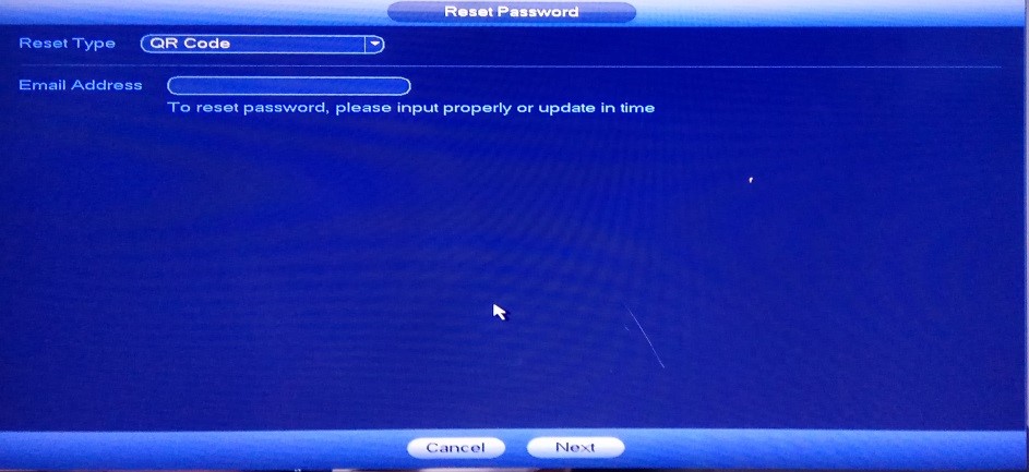 10. Masukkan Security Code yang dikirim di email tadi di menu reset password DVR/NVR, Klik Next.