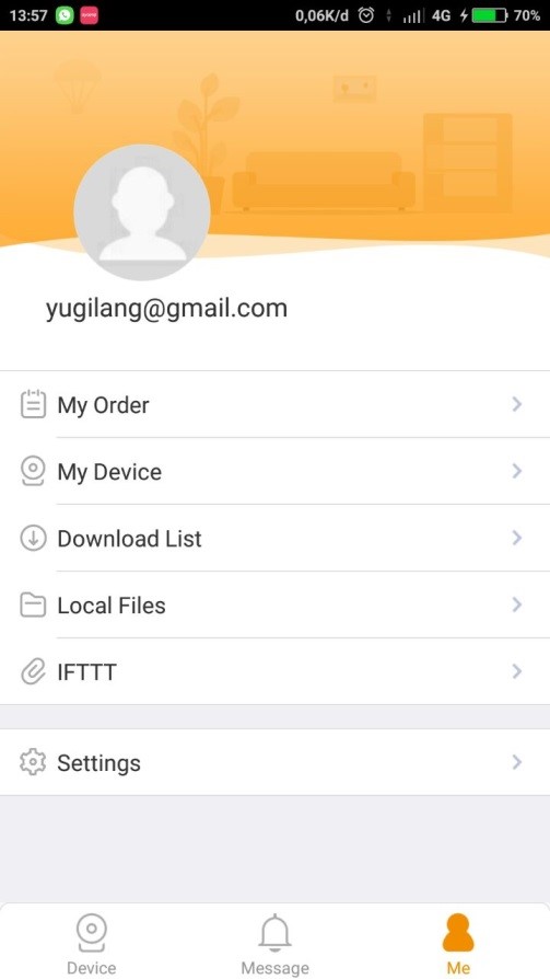 7. Pilih Menu Me, Pilih Setting dan pilih Reset Device Password